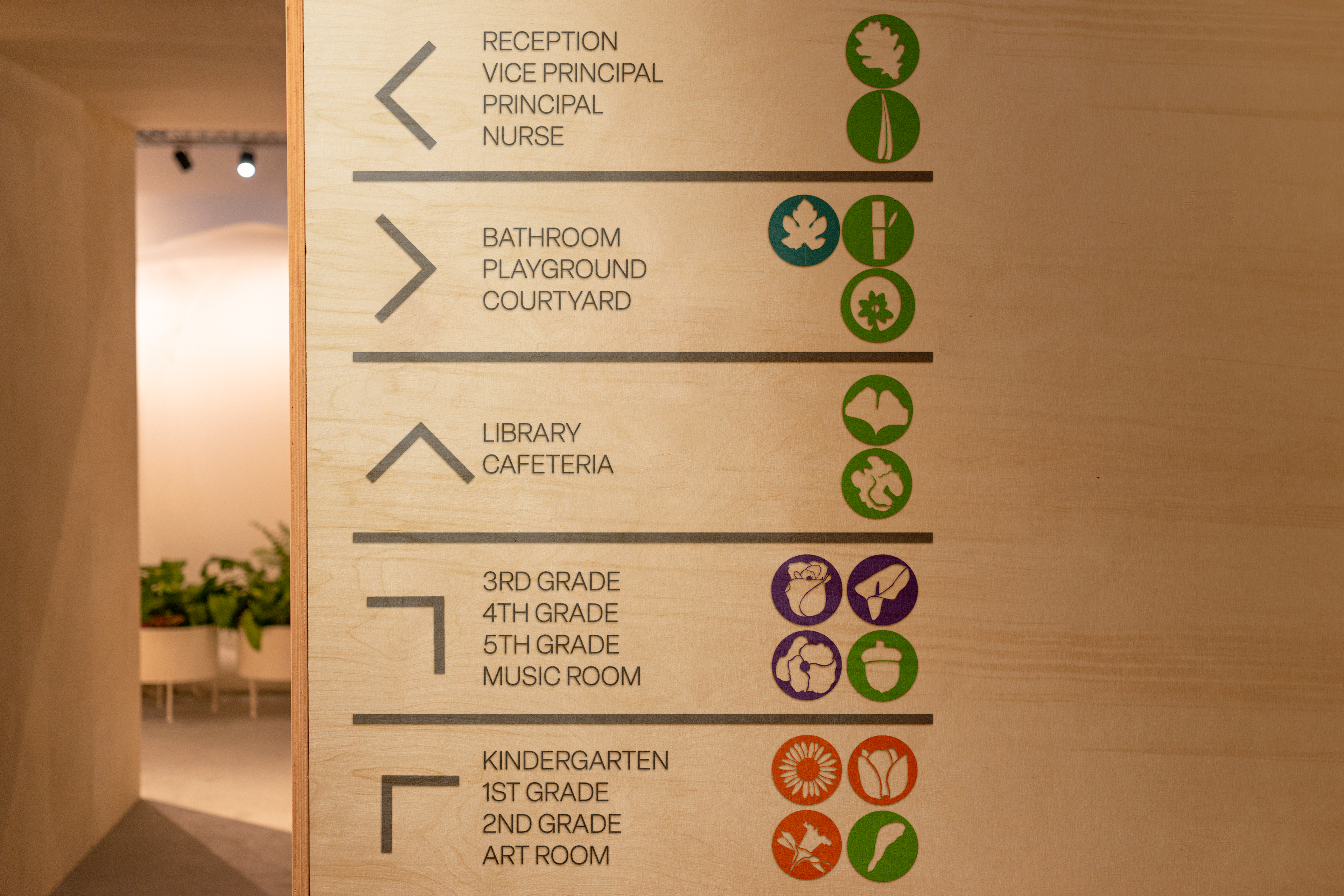 Custom wayfinding symbols rooted in nature designed for Calyx Elementary